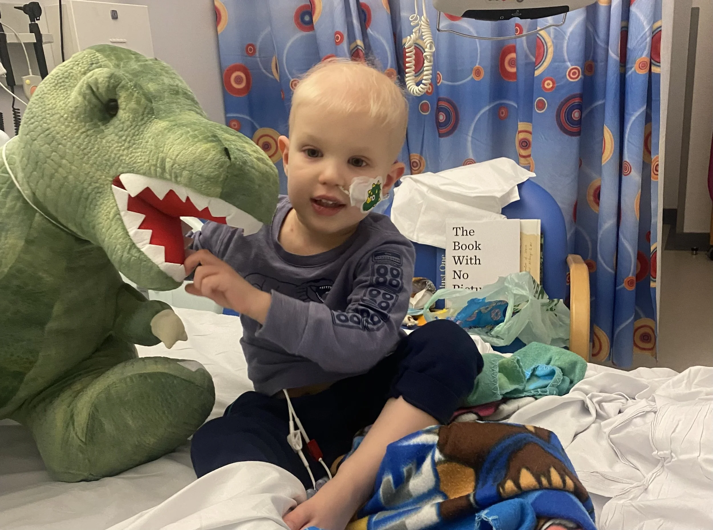 In anticipation of coming home for a few days before the start of the high dose chemo, Zac is weaned off TPN. Due to the fact that he still has zero appetite and has lost a fair bit of weight, it is decided that he will need an NG tube. This is a tube that goes through his nose directly into his tummy that we can use to administer his feeds as well as any medication he needs. In the long run it would make life a little easier with regards to the medication as he always hated taking it so we would often have to pin him down and squirt it into his mouth, especially considering during the high dose chemo he would be on A LOT of medication. That afternoon he had the tube placed. Despite the best efforts of the amazing nurses and play specialists to distract him, we ended up having to, once again restrain him, while the tube is inserted up his nose. There is a lot of initial retching, understandably Zac is not impressed and doesn’t speak with us for the rest of the afternoon. By the next day however Zac has grown quite used to the tube and the little dinosaur sticker holding it in place against his cheek. We meet with the dietician who teaches us how to administer tube feeds using a portable feeding machine at home. It can be used through the night whilst stood in a little stand next to his bed, or during the day where it can be kept in a little rucksack that Zac could wear to allow him to move around with it on. The rucksack became known as “mini-fishy” by Zac and the only time we tried it on his back he toppled over under the weight of it, so we ended up just hovering around him instead and picking it up to move it as he moved around.